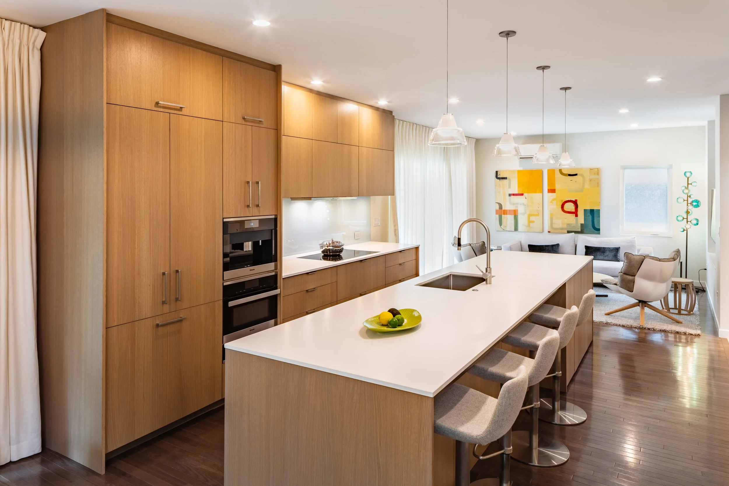 We embraced the modern design aesthetic through a complete remodel of this beautiful Madrona home. Elegant detail and premium features include floating wood stair w/ custom non slip inlays, Henrybuilt cabinets, and pneumatic vacuum elevator – the first of its kind in Washington. Along with an extensive garage addition, panoramic rooftop deck, and redesigned yard with retaining walls and landscaping, this 3-story home epitomizes modern elegance.
