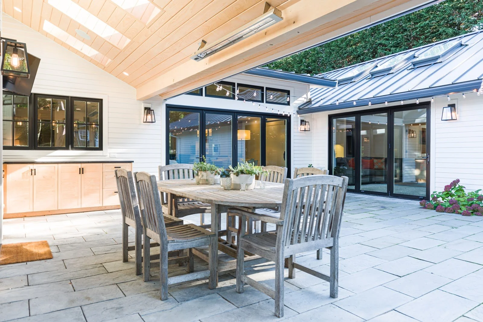 • All new siding, fully hemmed metal roof with custom wide bottom gutters and Marvin window package w/ port orford cedar wood covered outdoor living space