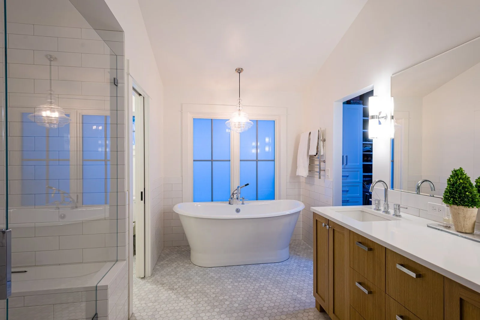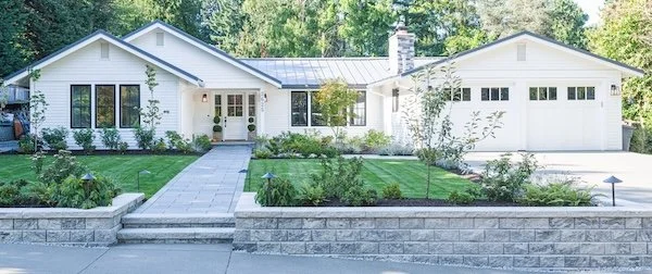 The goal was to completely transform this 1960’s rambler into a modern farmhouse with an open floorplan that embraced gardening, outdoor living and entertainment for this active family. It took a sizeable addition and whole house remodel (except the kitchen and garage) to get it done. We added an entire new 1134 sq ft south wing to the home, a 400 sq ft backyard patio with covered living area, and a mudroom addition. All new siding, metal roof, windows, and rooflines re-make the look of the home and large bifold patio doors in both the living room and kitchen merge inside and outside spaces for epic entertainment and flow.